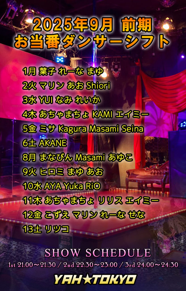 💫2025年9月前半 お当番ダンサーシフト公開💫