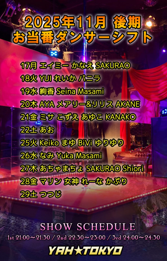 💫2025年11月後半 お当番ダンサーシフト公開💫